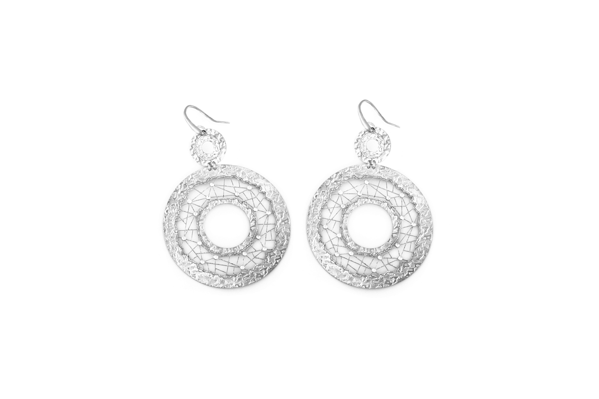 Minđuše izrađene od srebra finoće 925, koje će svaka dama poželeti u svojoj kolekciji. Krugovi sa mrežastom strukturom, izuzetno atraktivan komad nakita.